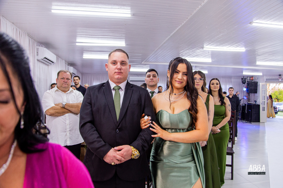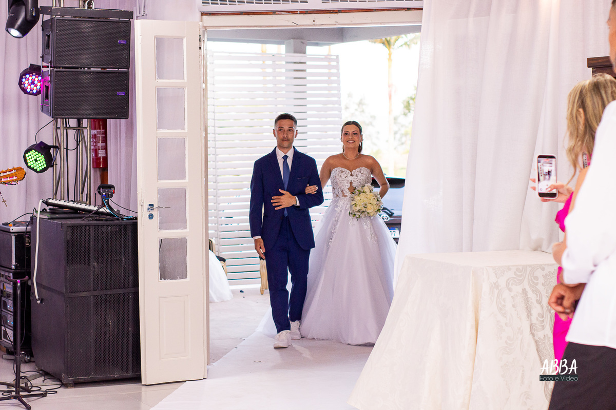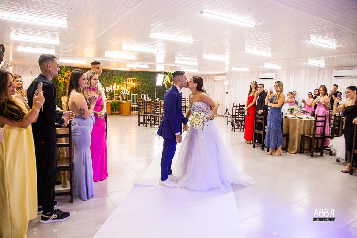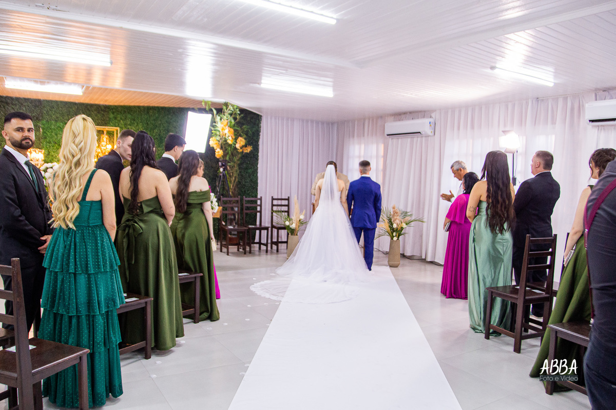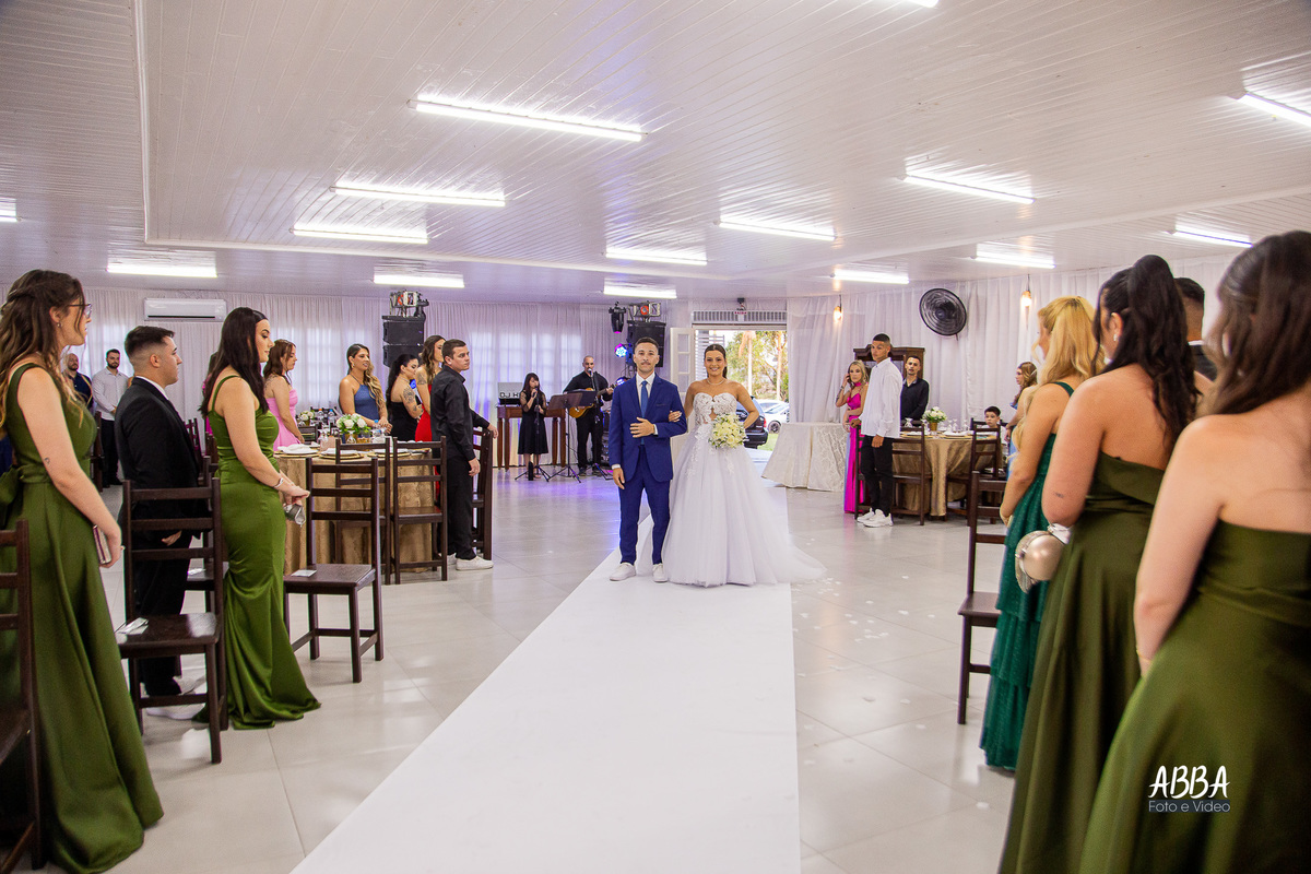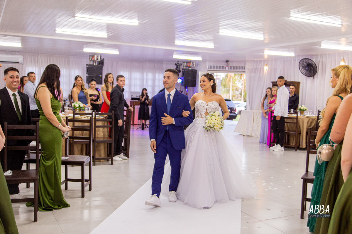 A Kamille, radiante, parecia brilhar ainda mais ao caminhar rumo ao seu grande amor.