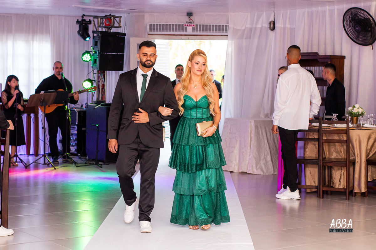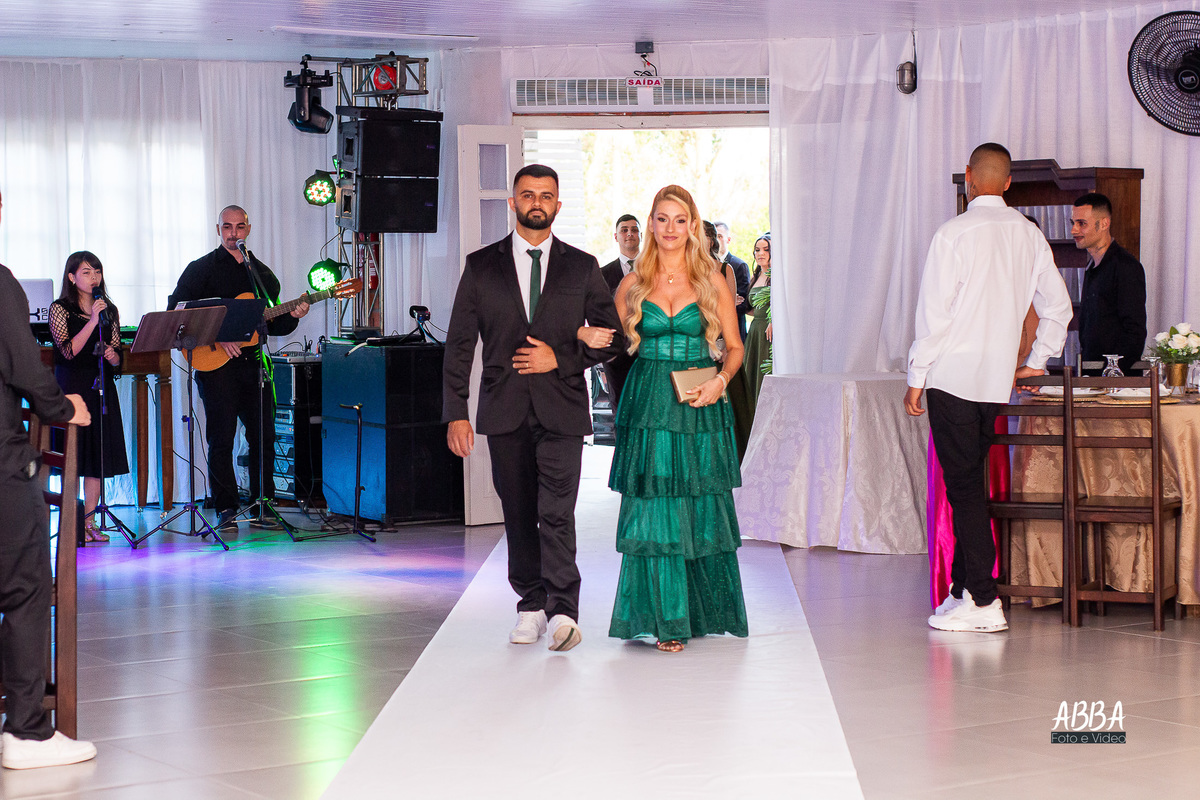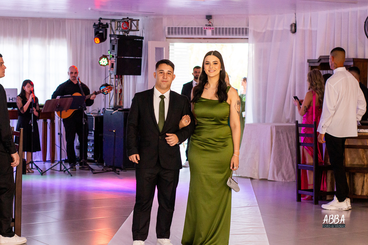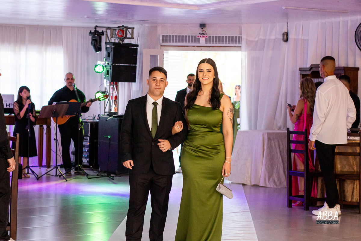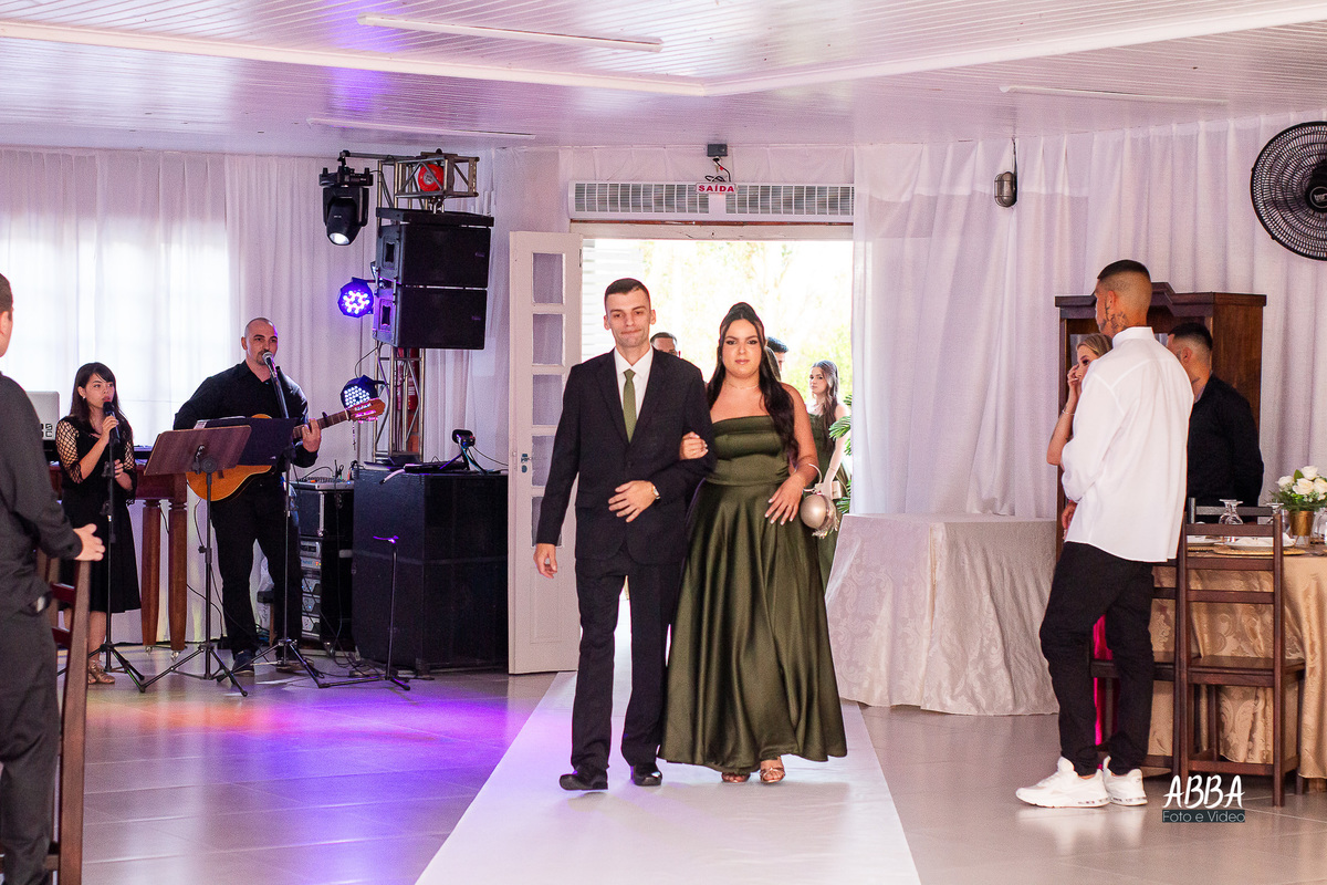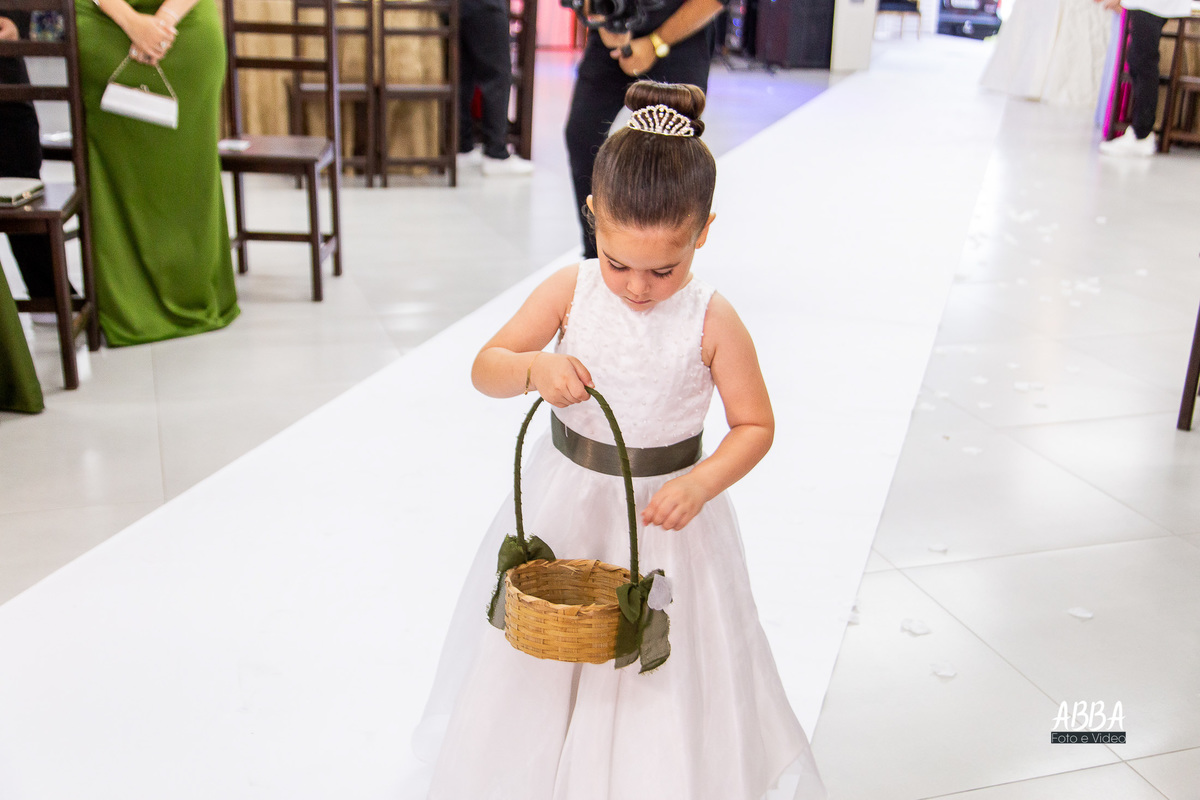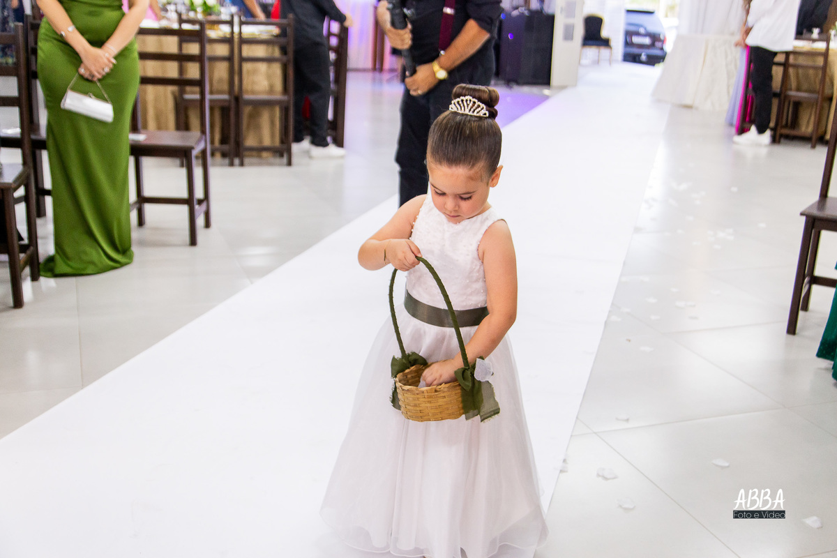 A Kamille, radiante, parecia brilhar ainda mais ao caminhar rumo ao seu grande amor.