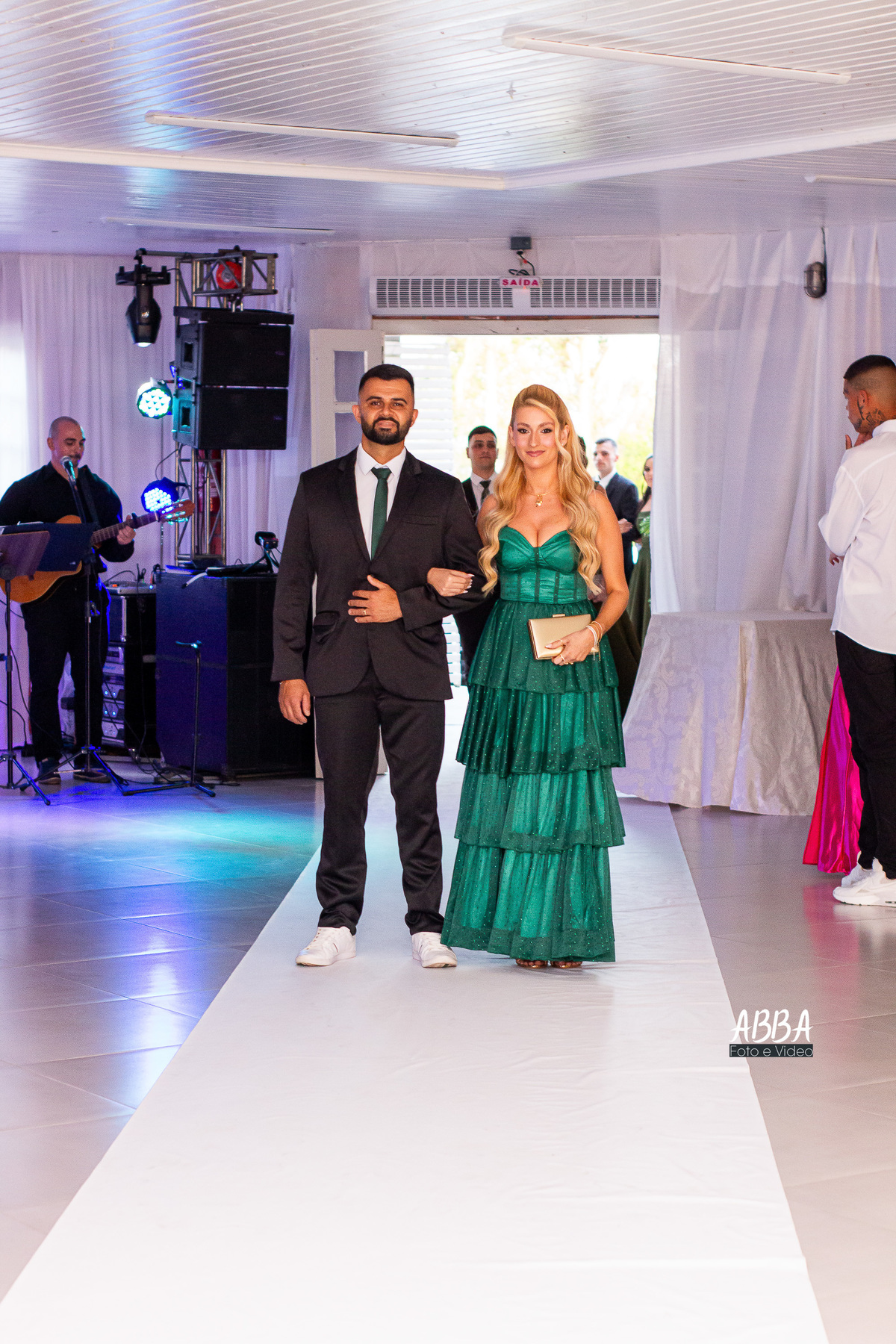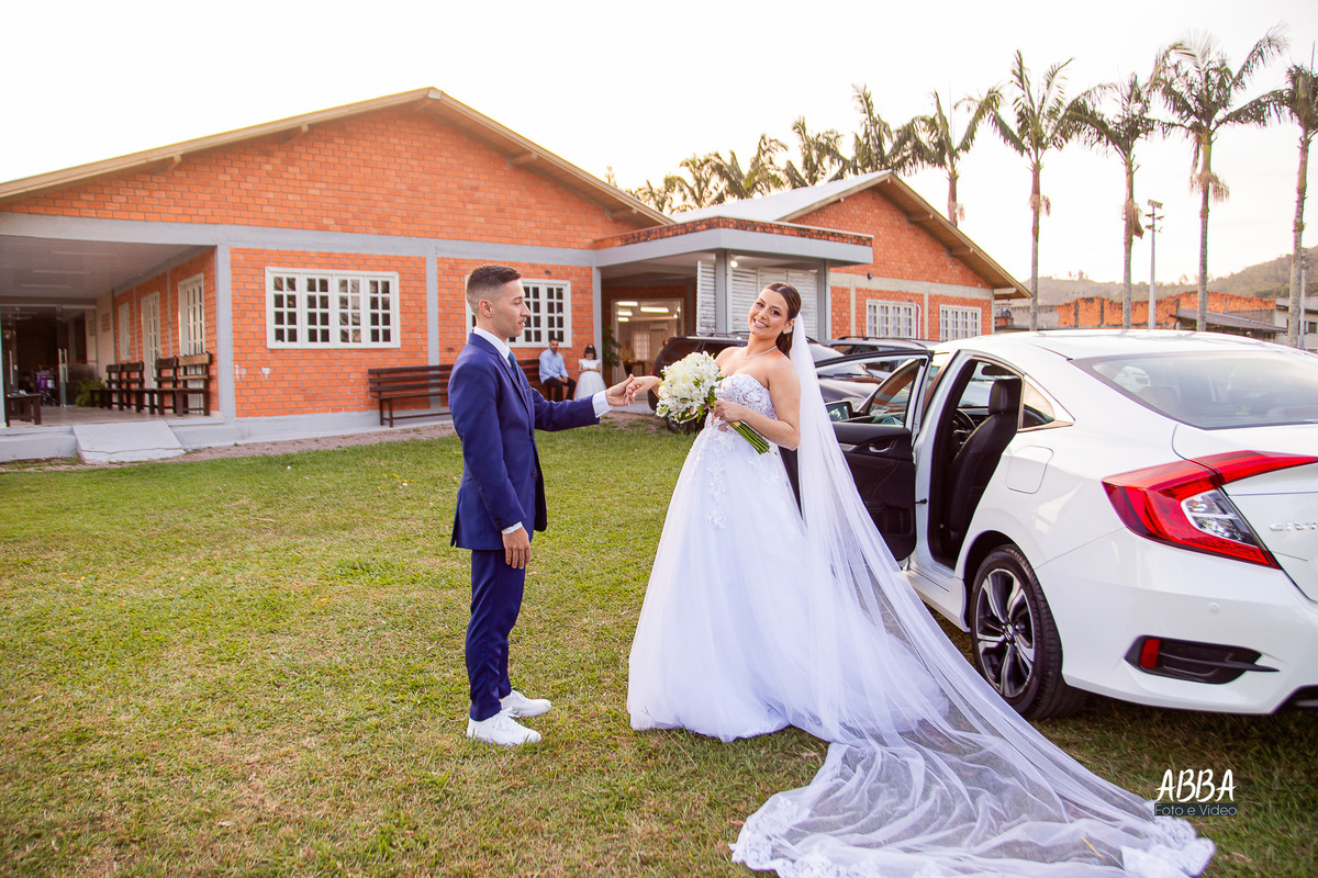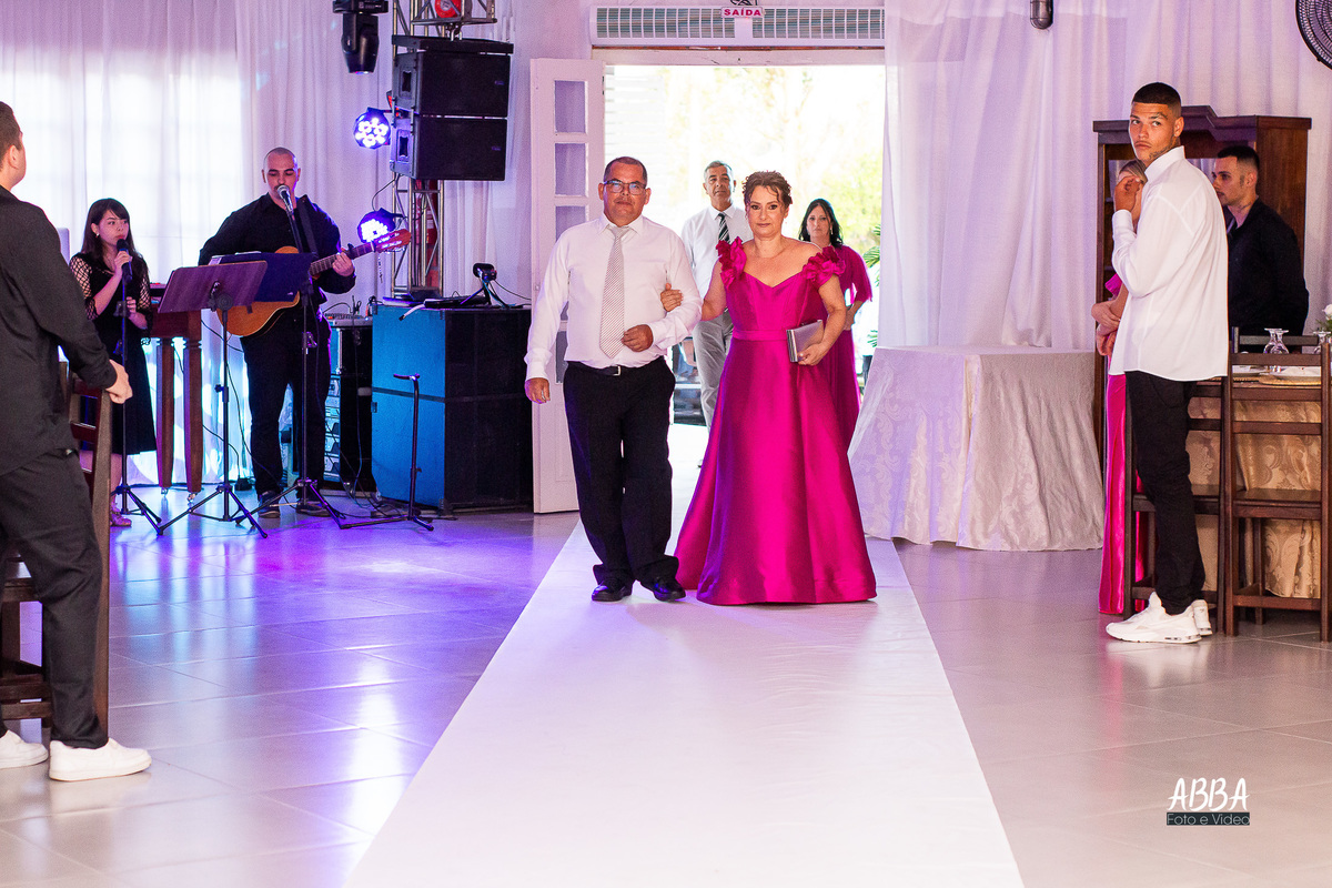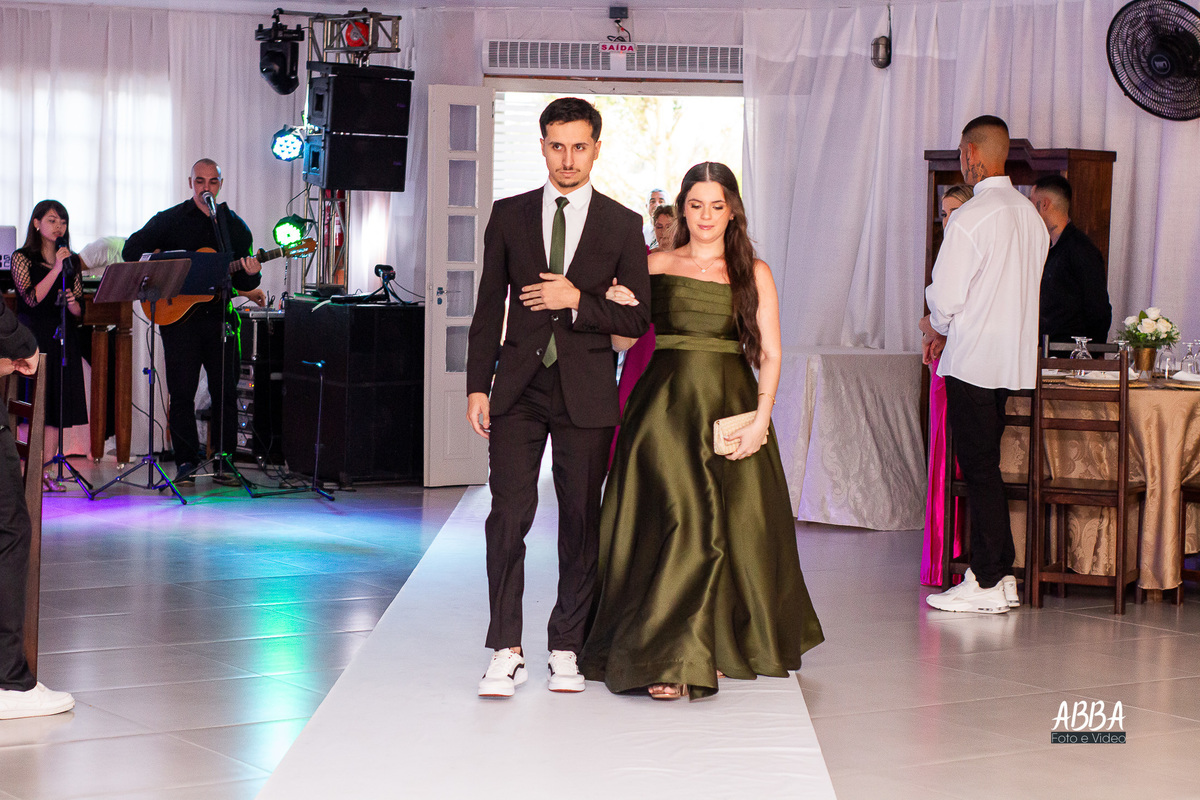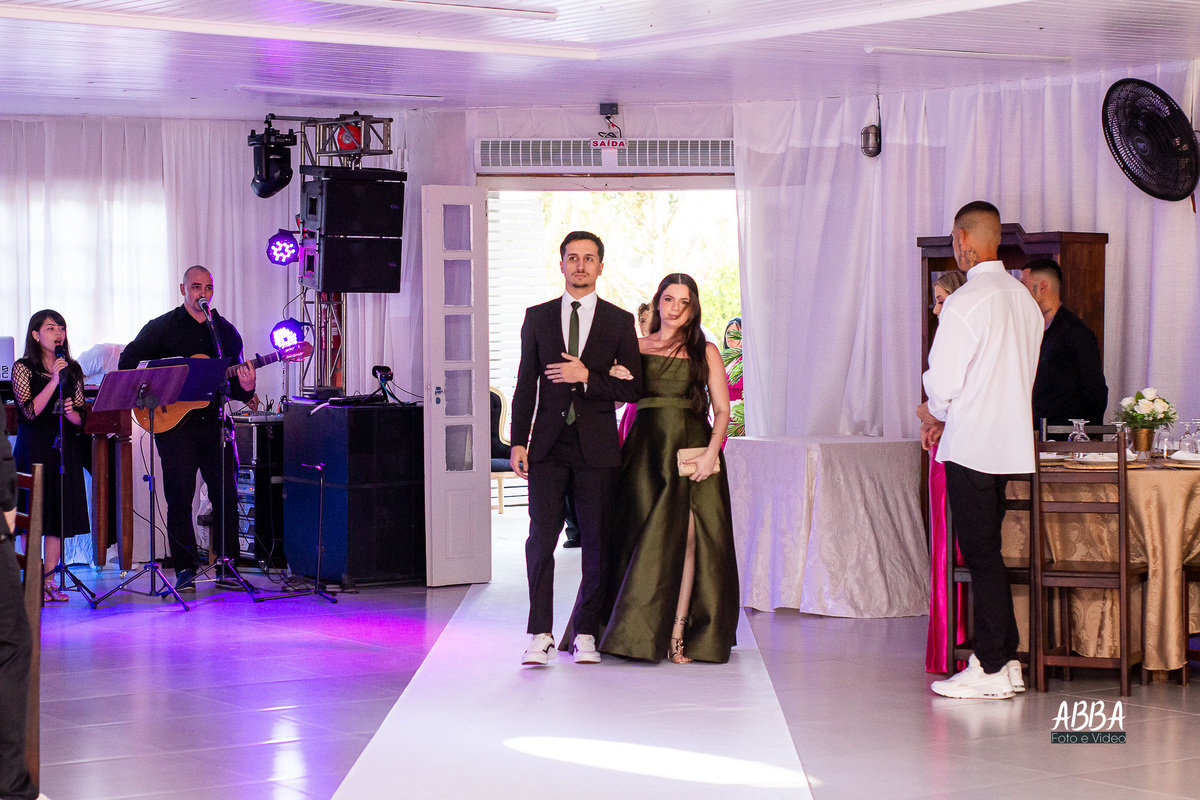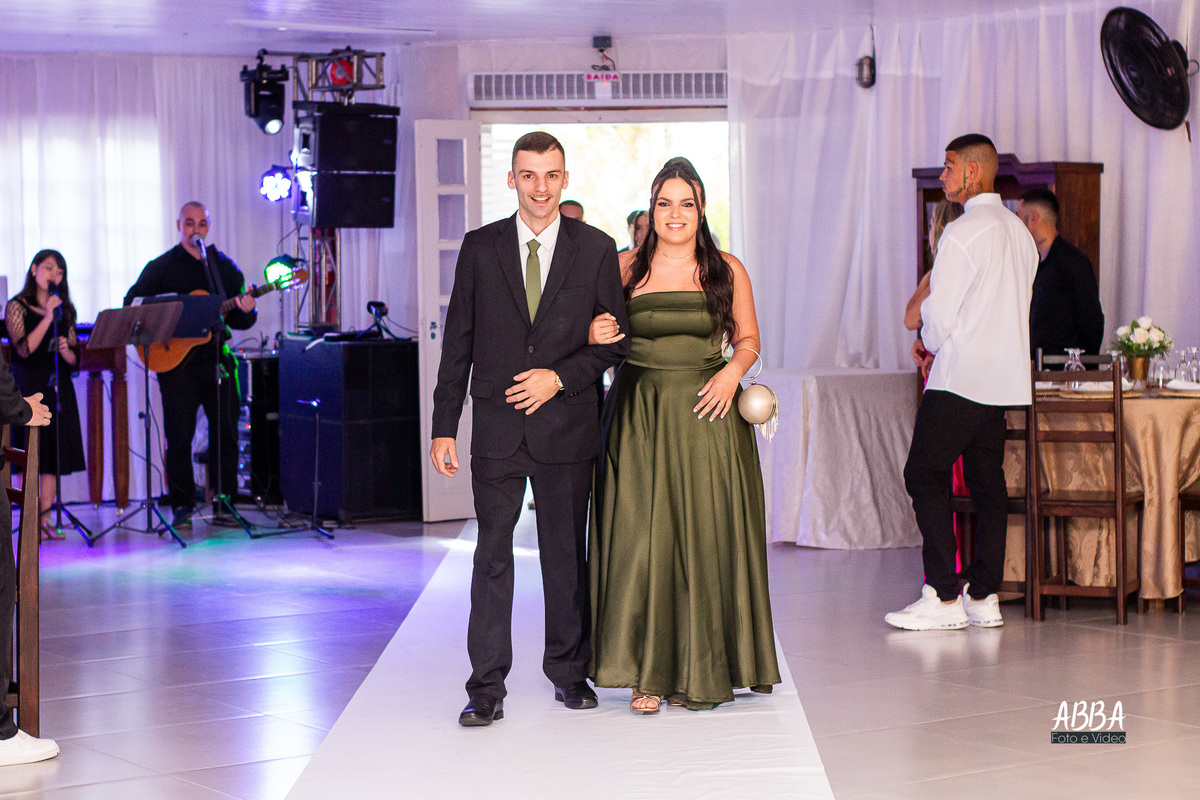 A Kamille, radiante, parecia brilhar ainda mais ao caminhar rumo ao seu grande amor.